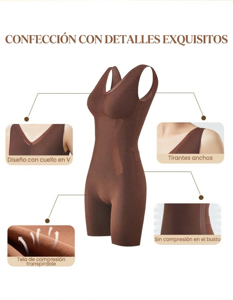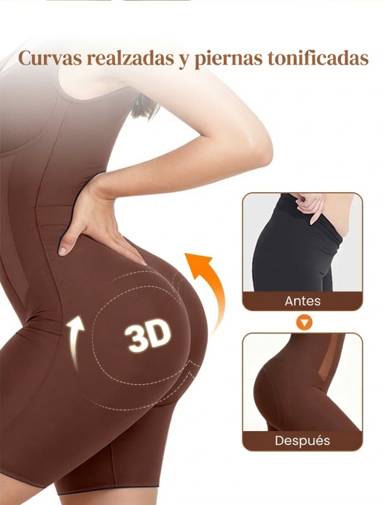 Nylon-elastanový materiál lekárskej kvality vyhladzuje brucho, boky a stehná bez toho, aby tlačil na pokožku. Bezšvová kompresia zostáva na mieste aj pri cvičení, joge alebo každodennom nosení – je ideálna ako diskrétne športové oblečenie, od posilňovne až po ulicu.